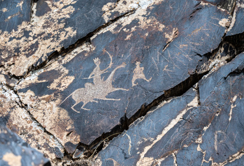 Auf der Weiterfahrt Richtung Samarkand besuchen wir ein abgelegenes Tal mit Petroglyphen (Felsritzungen).