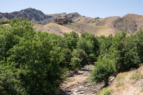 Das Dorf Sentop liegt in den Nurataubergen entlang eines Flüsschens und ist eine üppig grüne Oase in der Steppenlandschaft.